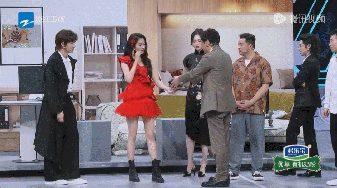 整蛊结束后,终于站在这热烈氛围C位的关晓彤,说起自己的感想。