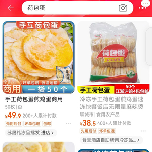 新京报记者在电商平台搜索“荷包蛋”发现,产品常见规格为一包50个左右冷冻荷包蛋,价位在40元—50元区间,有单品销量超过1000单。评论区中,有人称用于个人早餐,也有人用于餐车经营等。搜索“预制蛋”则可以看到,除冷冻荷包蛋外,还有溏心蛋、鸡蛋卷、卤蛋等蛋制品。