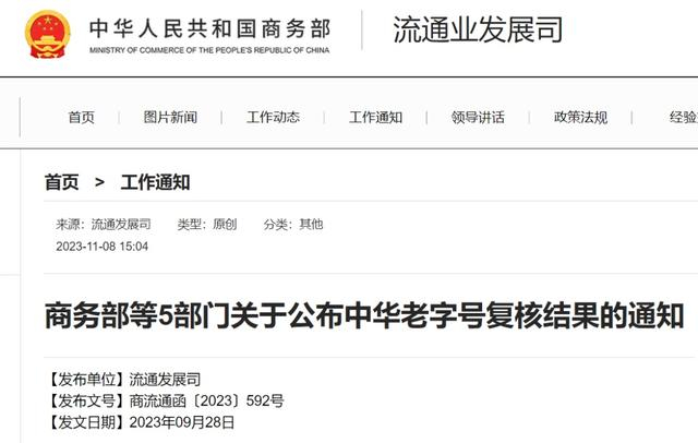 为推动中华老字号顺应市场机制,持续健康发展,根据《中华老字号示范创建管理办法》,坚持“优中选优”的工作原则,实施“有进有出”的动态管理,商务部、文化和旅游部、市场监管总局、国家知识产权局、国家文物局联合对已有中华老字号开展复核。
