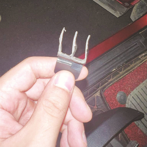 近日,记者见到了覃先生的汽车,打开该车的主驾驶位车门,便看到主驾驶位底部的饰板垂落在一旁。记者发现该饰板连接座椅的卡扣质地较为柔软,不过记者坐上该座椅后,发现乘坐体验并没有发生改变。