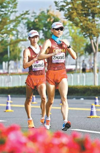 男子20公里竞走张俊(右)和王朝朝