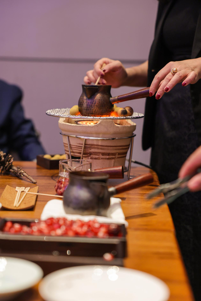 “秋已暮,雾成霜,霜降是二十四节气中的第十八个节气,此时天气逐渐变冷,露水凝结成霜,预示秋天即将画上句点。”活动特别邀请非遗老师为大家带来围炉煮茶,共同感受“轻煮岁月慢煮茶”的岁月静好。