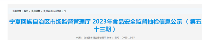 宁夏回族自治区市场监督管理厅公示2023年食品安全监督抽检信息(第五十三期)