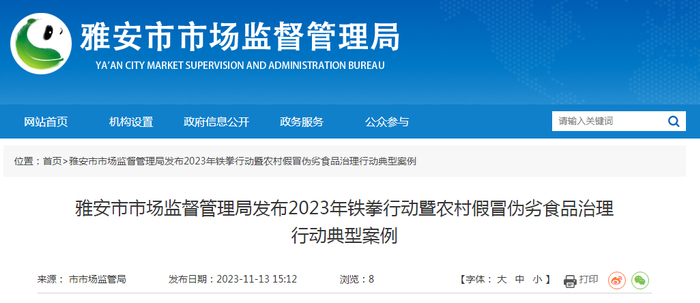 来源/四川省雅安市市场监督管理局网站