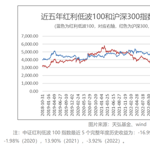 风险提示:天弘中证红利低波动100指数型发起式证券投资基金(A类)成立于2019年12月10日,成立以来近5个完整会计年度产品业绩及比较基准业绩为2020年4.31%(-1.78%)、2021年22.54%(13.23%)、2022年1.85%(-3.65%),业绩数据来源于基金定期报告。中证红利低波100指数近5年收益为:-16.99%(2018)、12.43%(2019)、-1.98%(2020)、13.90%(2021)、-3.92%(2022)。观点仅供参考,不构成投资建议,市场有风险,投资需谨慎。基金过往业绩不代表未来表现,基金管理人及基金经理管理的其他基金的业绩并不构成对本基金业绩表现的保证。投资者在购买基金前应仔细阅读基金招募说明书与基金合同,请根据自身投资目的、投资期限、投资经验等因素充分考虑自身的风险承受能力,在了解产品情况及销售适当性意见的基础上,理性判断并谨慎做出投资决策。本基金根据存托凭证发行与交易管理办法的要求,于2021年调整过基金投资范围,具体请阅公司官网披露的基金合同、招募说明书等法律文件。指数基金存在跟踪误差。