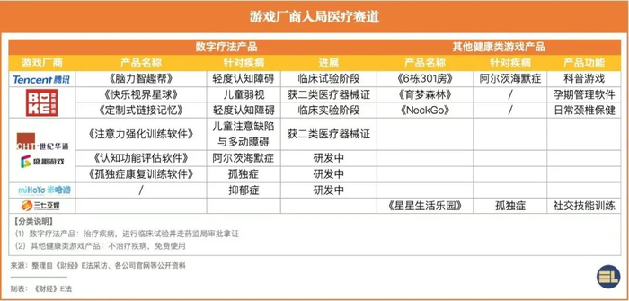 游戏厂商们进入治病救人的行业有两类意图。一类是借道游戏进入商业前景广阔的数字疗法市场,其产品研发和推广的方式类似于医疗器械;另一类则是具有健康类属性的游戏产品,主要服务于ESG(环境、社会和治理)方面的可持续发展目标或企业社会责任形象建设。而腾讯和波克城市这两家公司,则是两类意图皆有布局。