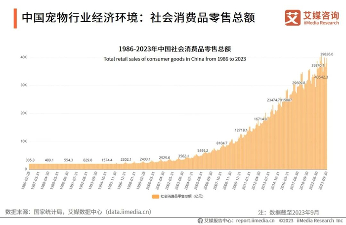 中国宠物行业经济环境:社会消费品零售总额