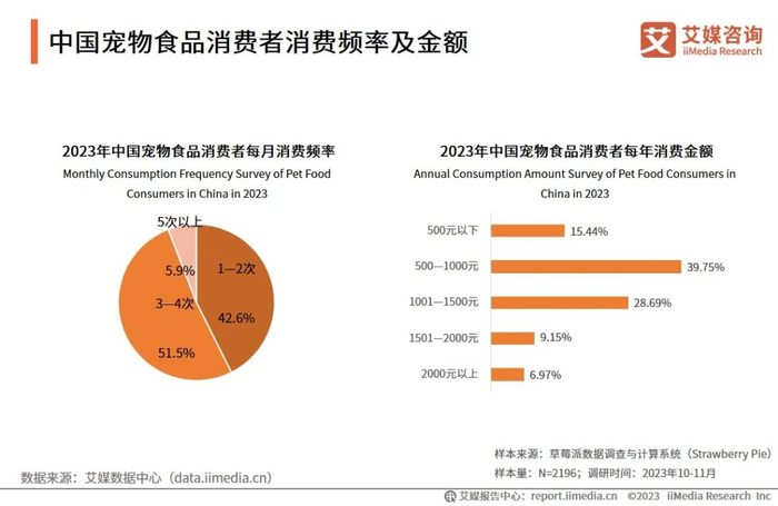中国宠物食品消费者消费频率及金额
