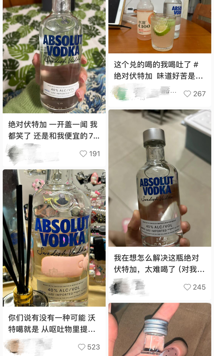 不少网友吐槽绝对伏特加的味道,“国内白酒好歹还分个酱香、醇香和清香,绝对伏特加只剩酒精味儿了。”