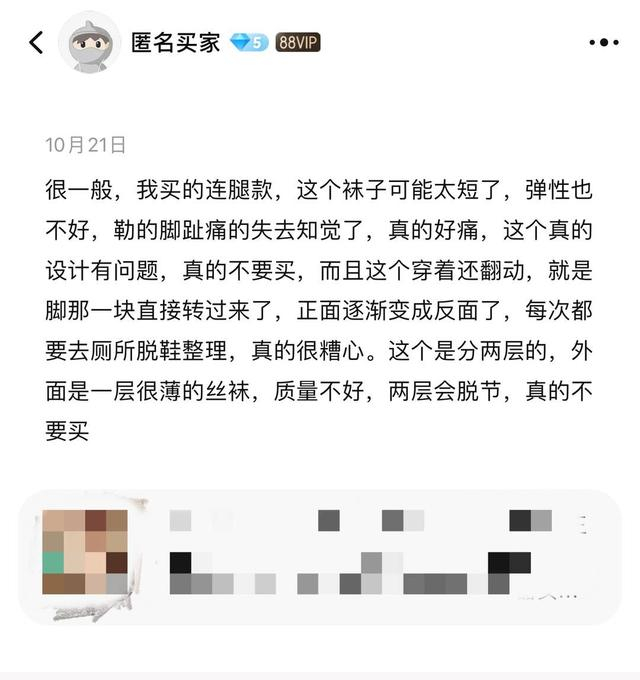 也有消费者反映,不仅勒脚,“还会勒肚子,穿上后不敢吃太饱。”