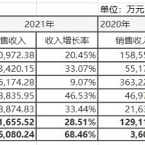 但甫一进入2021年、2022年,亦即本次IPO报告期的主要年度,发行人的业绩好似突然插上了飞翔的翅膀,销售收入分别暴增68.46%、121%,在大幅超越可比公司收入增幅的同时,亦令发行人的表显业绩满足了北交所的上市标准。详见下表。