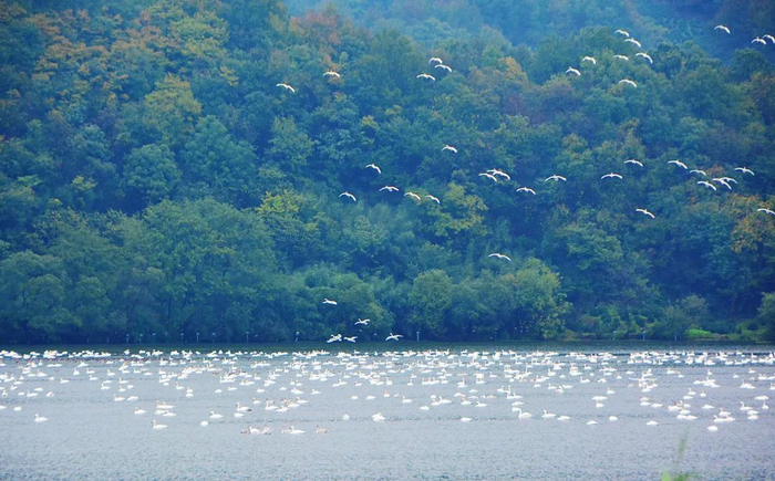 金汤湖湿地是各种野生鸟类的栖息地和候鸟的迁徙地。冬日来临,洁白无瑕的天鹅翩翩翱翔于金汤湖上空,为万顷湿地平添了无数生命的气息。