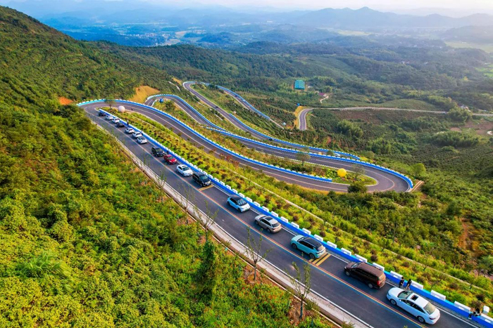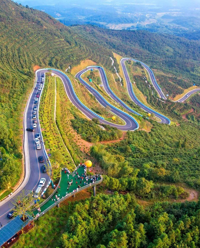 站在六道湾的观景台上,眺望青山含远黛,视野顿时变得开阔,层林浸染的山野在眼前铺开。