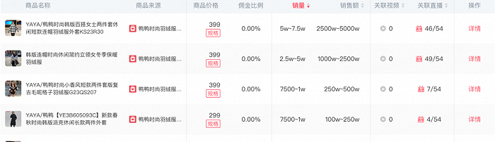 抖音账号“鸭鸭时尚羽绒服旗舰店”,只有42万粉丝,但是近一个月直播带货5000万-7500万。近一个月以来直播间卖的最好的是售价399元的鸭鸭羽绒服,卖出了5万-7.5万件。