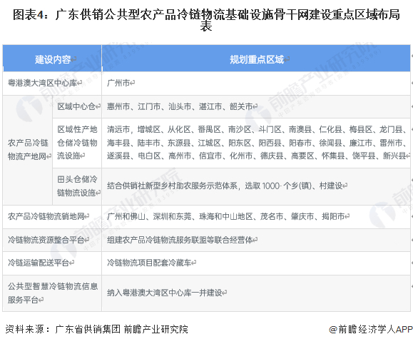 为加快广东省农产品冷链物流建设水平,广东省供销社出台了《广东供销公共型农产品冷链物流基础设施骨干网建设总体方案》,对广东省农产品冷链物流做出详细规划,具体情况如下表所示:
