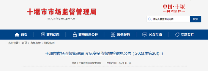 湖北省十堰市市场监管局发布2023年第20期食品安全监督抽检信息