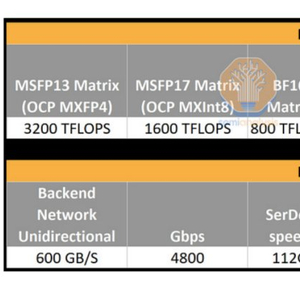 semianalysis表示,这个4.8T是单向的,是衡量联网速度的标准。当你在 NVLink 上计算 Nvidia 的数学时,实际上是 9.6T,而 H100/H200 是 7.2T。微软的 Maia 100 实际上比 Nvidia 拥有更多的扩展带宽,这是非常令人印象深刻的。
