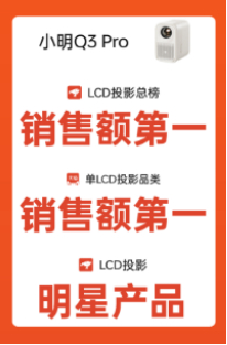 千元投影机皇小明Q3 Pro智能投影仪斩获京东LCD投影总榜销售额第一,入选LCD投影明星产品,天猫单LCD投影品类销售额第一。