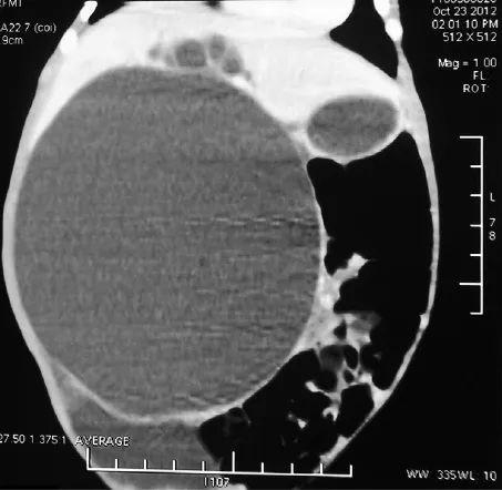 生后3天直径10cm巨大胆总管囊肿,术前CT