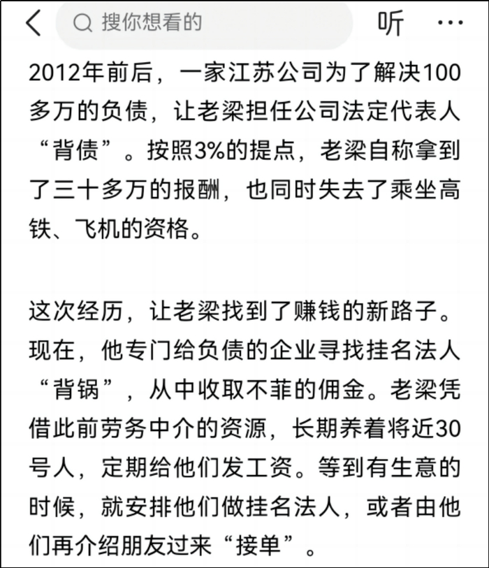 背锅法人拿十几万或者更多钱,然后成为替罪羊,但就是还不起钱。
