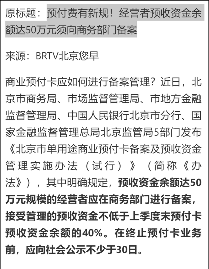 其实自始至终完善制度的诉求就特别强烈,比如健全和规范预付费制度,多地也在推进做了。