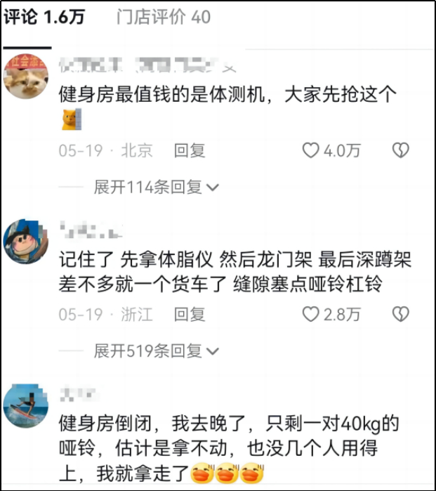 也难怪开健身房的老板会有一种暗示,你别怪我,要怪就怪大环境。别人都倒闭,我们凭啥不倒?