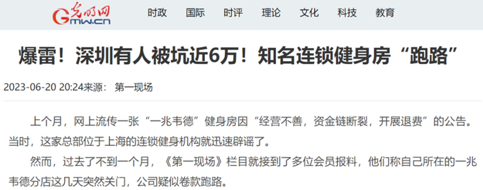 今年5月,《1818黄金眼》曝出一名杭州男子在一兆韦德花了21万办卡健身,结果21万不翼而飞,他是66岁的健身爱好者,弹幕评论区纷纷安慰他,身体是真好。