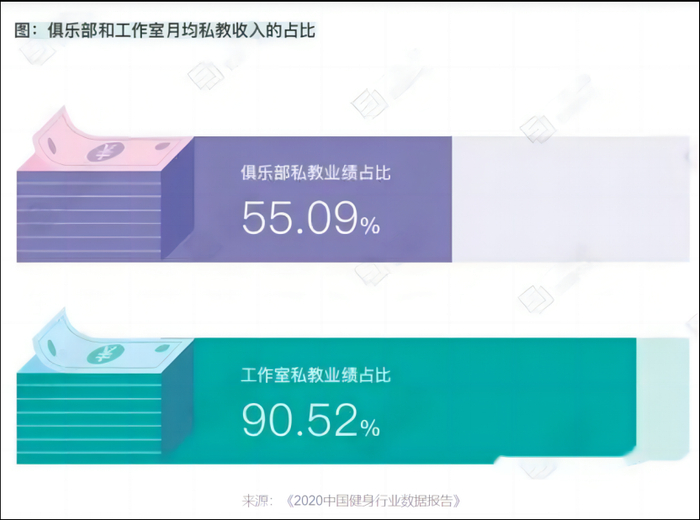 三体云动数据中心的这份调研结果还显示,私教带来的营收要占到一半以上。