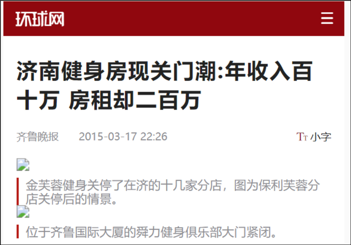 关于租金压力大的问题,齐鲁晚报几年前就给我们说了一个济南连锁健身房的经历:“年收入百十万,房租却二百万”。