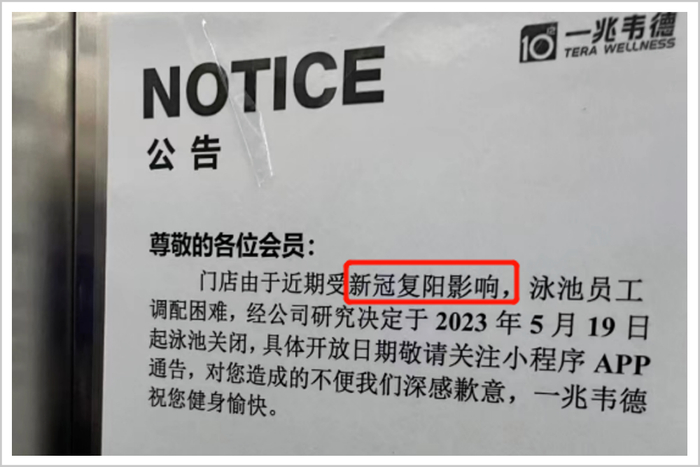 一兆韦德的一个门店找了员工复阳的借口,关闭了泳池,还请大家不要担心。