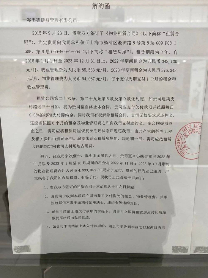 上海爆雷的一家门店,按合同要付月租金45万元。