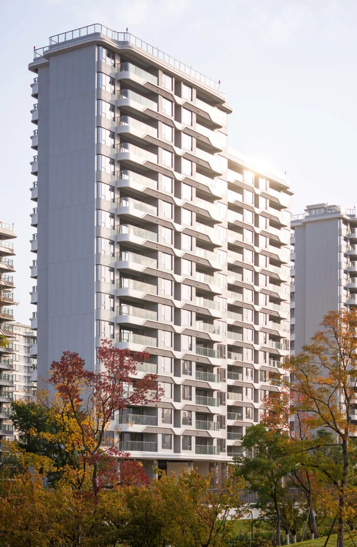 好的住宅,是从外到内的“美”一面。城投置地天湖岸项目总占地约100亩,容积率仅为约2.5,由21栋住宅组成,拥有与地标建筑一脉相承的设计风格。融合现代主义灵感,有别于市面上一般住宅复杂张扬的立面风格,旨在传递建筑更高阶、简约的审美理念。局部采用白色氟碳漆铝板,结合冷灰色仿石漆,搭配大面积玻璃幕墙,描摹出专属于项目的建筑表情,以更现代时尚的建筑风格,筑就城市美学天际线,与国际化体育场馆形成相互呼应的美感,以高阶改善的立面标准,呈现地标品质楼盘该有的高度。