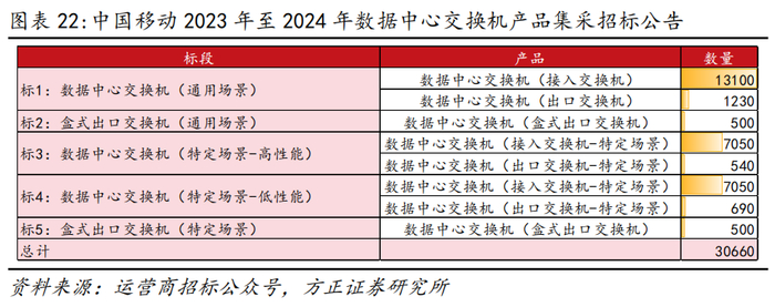 运营商集采数据中心交换机,新建与扩容需求推动交换机用PCB需求增长。中国移动2023年至2024年数据中心交换机产品集采(新建部分)公告显示,数据中心交换机新建部分需求量为30660台,相较于2022-2023年采购量16420台增长87%,特定场景交换机总体招标量(7590台+7740台)较通用场景交换机招标量(14330套)更大。运营商新建与扩容需求将持续带动交换机出货量增长,推动交换机PCB需求不断增长。