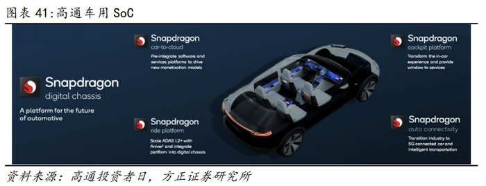 智能座舱SoC芯片升级,支持更多屏幕,需求端、供给端双重推动高密度HDI板市场扩容。从智能座舱SoC芯片来看,高通作为智能座舱芯片的领导者,自2014年以来,已经推出了四代产品,每一代都在制程工艺、性能和功能上有所突破。高通的第三代智能座舱芯片骁龙8155,采用7nm工艺,是国产中高端车型的“标配”,拥有8Tops的AI算力、1000GFLOPS的GPU算力、可支持6个摄像头、4块2K屏幕或3块4K屏幕、WiFi6、5G和蓝牙5.0连接,可以强大地驱动语音交互、语音识别、语义识别等智能座舱功能。