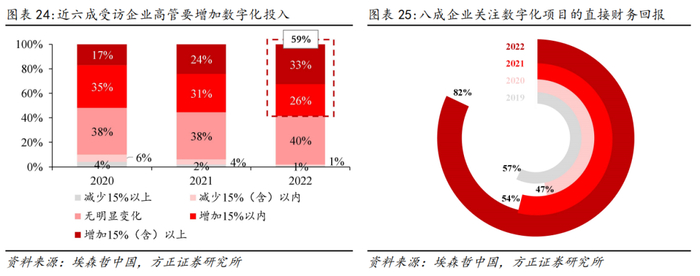 企业数字化投资意愿增加,园区网络的带宽要求提升。根据埃森哲《2022企业数字化转型指数》,有59%的企业高管表示未来1-2年会增加数字化投入,其中,增加15%以上投资的人数为33%,相比21年提升9个百分点。数智化升级的推动下企业园区网络已经迎来了快速发展的机遇,特别是2023年AIGC的崛起,云端业务和网络的深度融合,对园区网络的带宽提出了更高的要求。