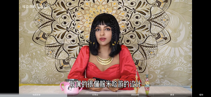 举个例子,3.0版本的须弥地图,原型融合了波斯、埃及及印度等多国多地建筑和文化风格,B站上来自埃及的UP主@埃及南希,曾做过一期视频,从人物、地图、动物及美食等方面分析须弥沙漠部分做得怎么样,“我挺佩服米哈游的设计,太细了”。南希表示沙漠中的镀金旅团原型有可能是埃及的贝都因人,“我说为什么地图上有这么多帐篷,贝都因人就是住在帐篷里的”。