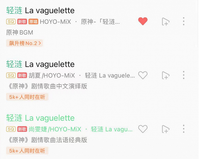 而把情绪传递到位,需要依托在内容之上。《神女劈观》和《轻涟》都不是单摆浮搁的单一音乐作品,它们是基于《原神》的剧情、角色而诞生的,所以玩家早通过剧情建立了情感链接,《神女》或《轻涟》恰好就是玩家的情绪抓手。