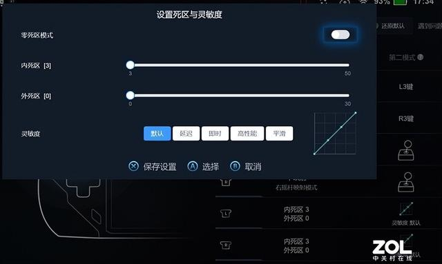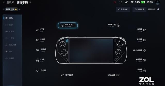 游戏库旁边能对掌机按键进行调控,针对性调整按键功能,比如摇杆的灵敏度与死区等功能都支持调节,高阶用户可以根据自己的使用习惯自定义合适的编辑手柄布局。