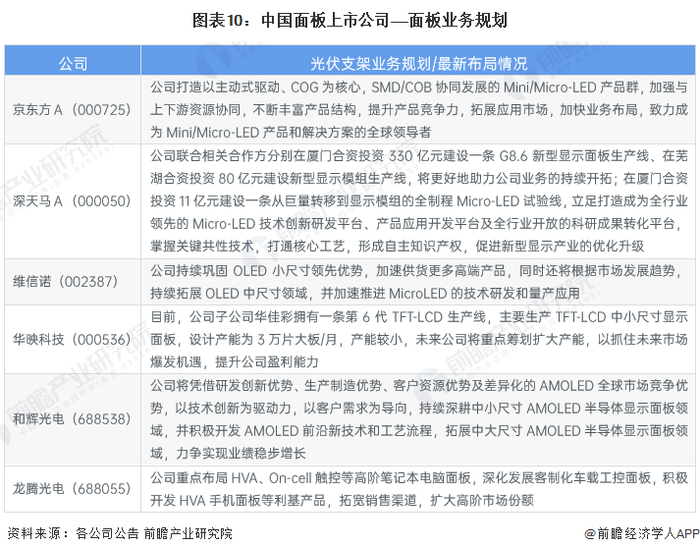 5、行业上市公司面板业务规划对比