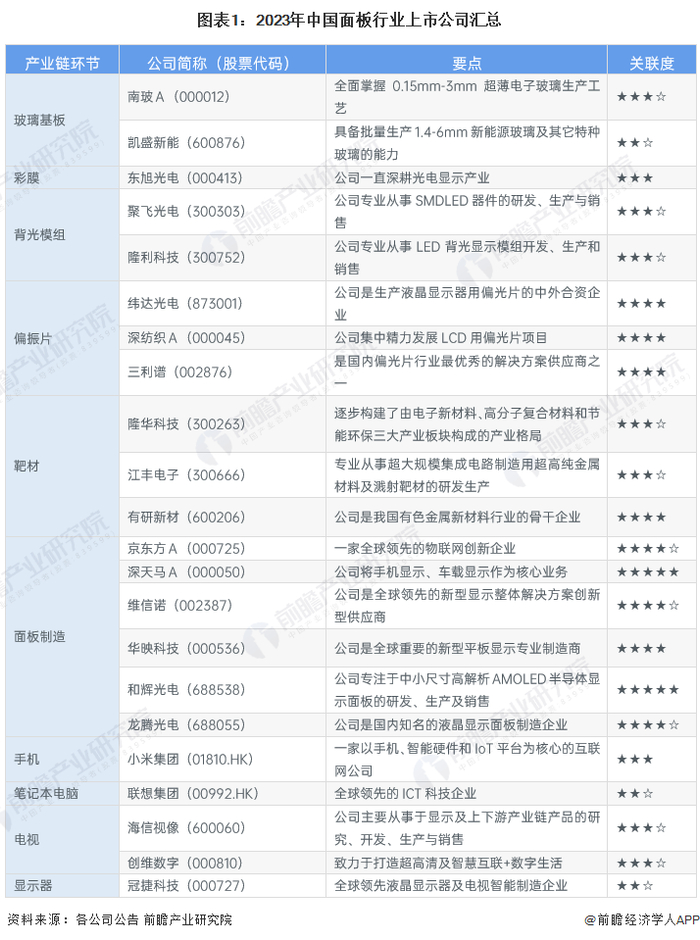 1、面板行业上市公司汇总