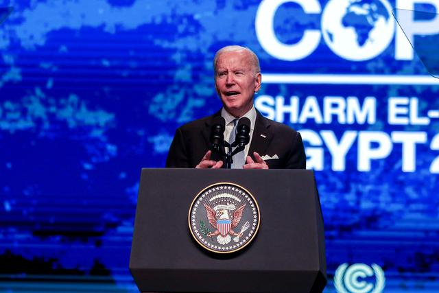 当地时间2022年11月11日,在埃及沙姆沙伊赫举行的《联合国气候变化框架公约》第二十七次缔约方大会(COP27)上,美国总统拜登在讲话时对美国于2017年退出《巴黎协定》向全球道歉。图/IC photo
