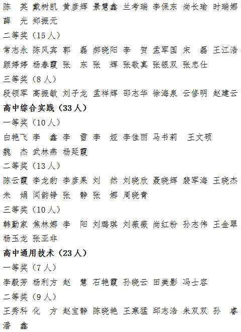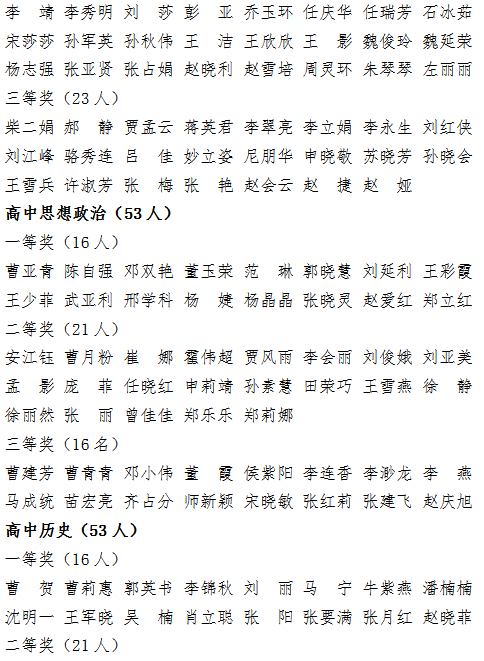 根据《河北省教育科学研究院关于开展2023年中小学省级优质示范课评选活动的通知》(冀教院办〔2023〕1号)和《邢台市教育科学研究所关于开展2023年优质课评选活动的通知》(邢教研字〔2023〕2号)精神,邢台市教育科学研究所在2023年开展了中小学多个学科的优质课评选活动,现将全市中小学共25个学科的获奖教师名单公示如下: