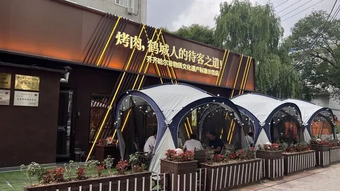 这是位于齐齐哈尔市的烟火气齐齐烤肉店,“烤肉+露营”的新模式受到顾客欢迎。