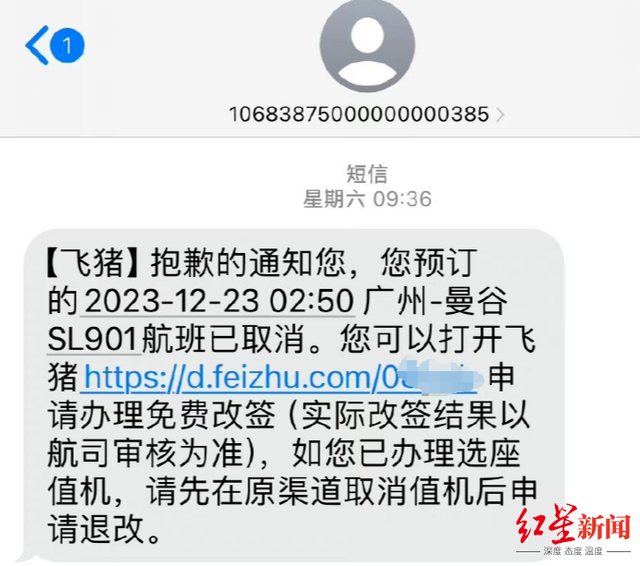 “我10月中旬购买的机票,上周六(11月11日)突然被退票的,根本没想到会被退。”11月15日,小恒告诉红星新闻记者,因要去泰国曼谷看演唱会,他在一个月前就通过飞猪平台购买了一张由广州飞往曼谷的机票。该机票的航班号为SL901,属于泰国狮子蒙特里航空公司,原定起飞时间为2023年12月23日02:50。