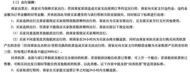 对此,飞猪平台工作人员表示,上述条款中的商家指的是在该平台上开店的商户,如消费者在其平台上某航司的旗舰店购买机票,那么该航司的旗舰店就是商家;如果是平台本身销售的机票,那么平台就是商家。“如果用户在平台上买票,平台没有出票,但告诉用户出票成功,导致用户在前往机场后发现没有出票,这就是商家造成的出行问题。这部分所有的费用和补偿就由平台承担。”