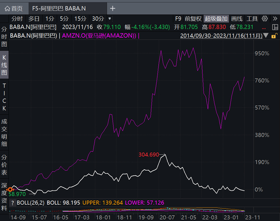 1个亚马逊市值=6个阿里巴巴:上市10年,阿里股价回到原点