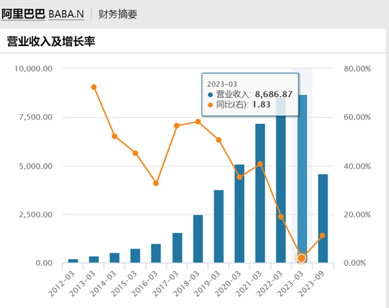 图3:阿里巴巴营收增速快速下滑