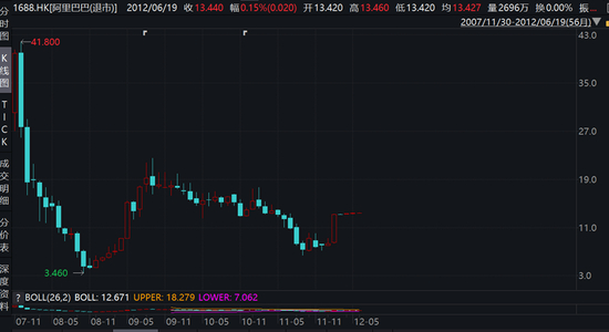 图1:2007-2012年,阿里巴巴(01688.HK)最终以发行价私有化