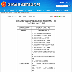 财联社11月17日讯(记者 郭子硕)国家金融监督管理总局11月17日发布的行政处罚信息显示,上海银行连收两张罚单,因涉嫌32项违法违规事实,合计被罚1380万元。其中一张罚单,主要涉及因漏报质或抵押物价值EAST数据、漏报权益类投资业务EAST数据等19项问题被责令改正,并处罚款共计690万元。
