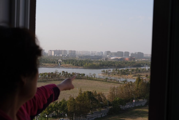 从刘美凤的新家,可以远眺奉贤新城的地标:上海之鱼与奉贤博物馆